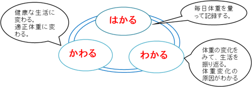 自分の行動と体重の変化にどんな関係があるのかがよく分かり、体重コントロールと健康生活につながります。